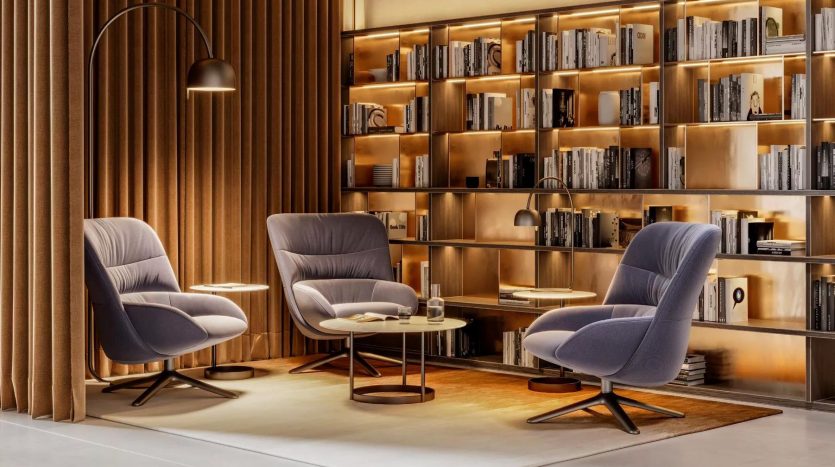 عند دخولك “ذا أس”، ستفتن بتصميم البهو الكبير المزدوج الارتفاع، حيث يتميز بكسوة من البلاط الرخامي من الأرض إلى السقف مع لمسات معدنية. يوفر اللوبي تجربة فريدة بمرافق مختارة بعناية.